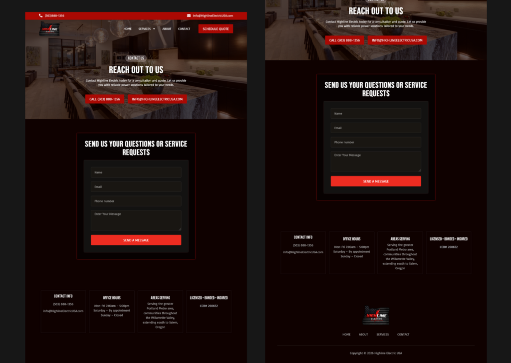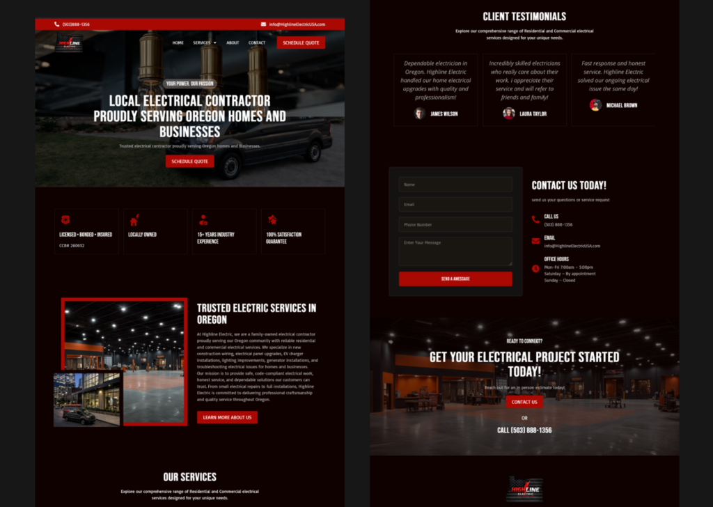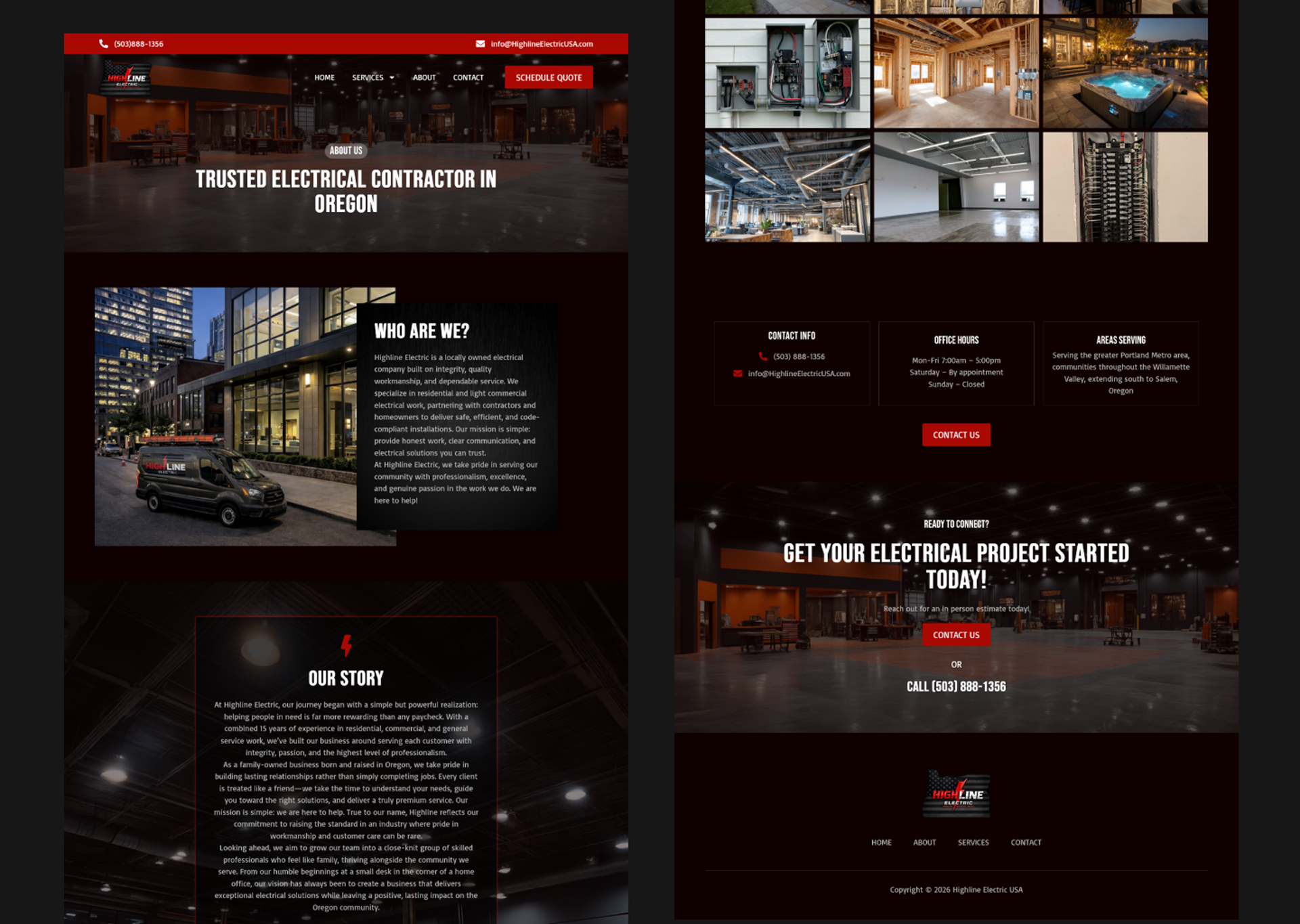 Highline Electric is a family-owned electrical contractor serving Oregon with reliable residential and commercial services. From new construction wiring and panel upgrades to EV chargers and generator installations, they deliver safe, professional, and code-compliant solutions customers can trust.